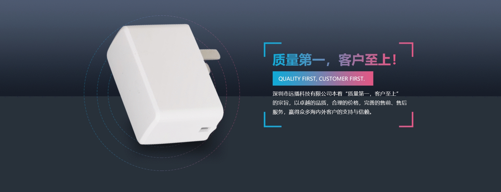 深圳市远播科技有限公司 创立于2015年,是一家长期致力于高频开关电源,充电器及消费电子产品电源适配器研发、生产和销售一体的名营企业。公司成立以来,本着"质量第一,客户至上"宗旨,以卓越的品质,合理的价格,完善的售前、售后服务,赢得众多海内外客户的支持与信赖。为迎合目前日益激烈的市场竞争和高新科技高速发展的需要,公司系列产品均取得了CCC、FCC、GS、UL、CE、KC、PSE、ROHS等国内外多项安规认证,同时亦通过ISO9001-2008质量体系认证。